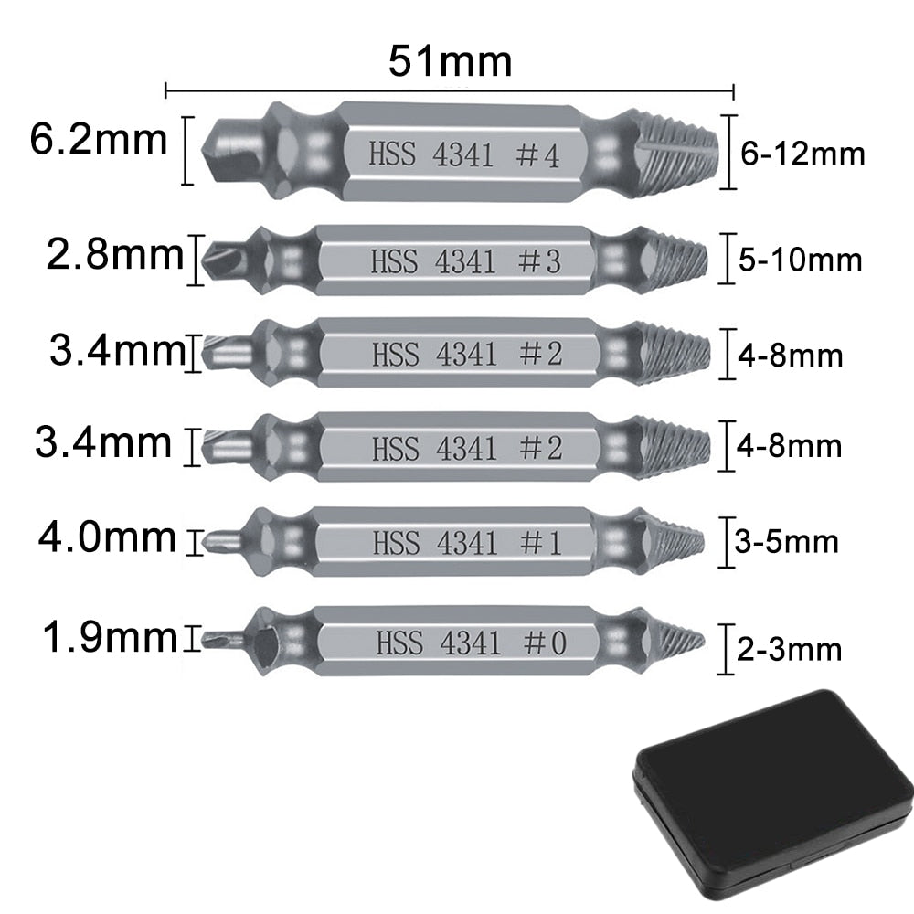 El Kit con 7 Brocas Extractoras de Tornillos Indestructibles transformará tu experiencia de reparación. Nunca más te frustres con tornillos dañados. Revoluciona tus tareas de mantenimiento con la solución definitiva para tornillos difíciles.
