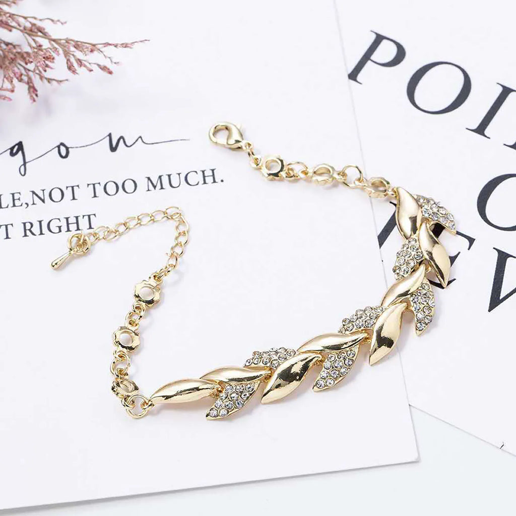 - Diseño elegante de hojas entrelazadas con incrustaciones de cristales brillantes.